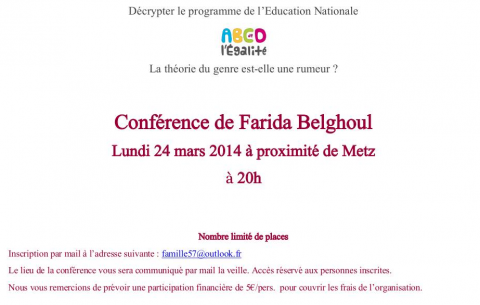 Farida Belghoul donnera une conférence à Metz le Lundi 24 mars 2014 à proximité de Metz à 20h, sur le thème :