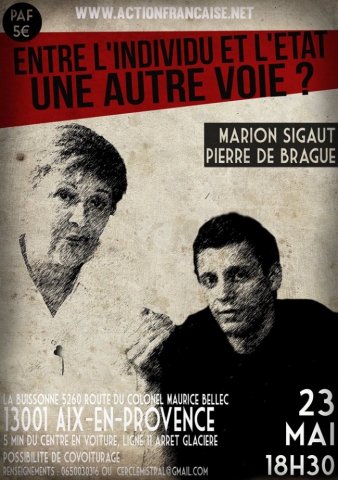 Marion Sigaut et Pierre de Brague donneront une conférence à Aix-en-Provence le vendredi 23 mai à 18h30, sur le thème :