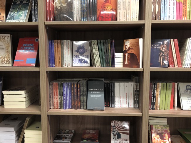 Celle qui vient de voir le jour à Paris s’appelle la Librairie Vincent – elle prend la suite de la Librairie Facta – et elle est domiciliée au 115, avenue de La Bourdonnais, près du Champ-de-Mars et de l’École militaire, un lieu prestigieux. Une boutique boisée dans laquelle les numéros de Faits & Documents et les livres Kontre Kulture, on le voit sur la photo, sont en bonne place !
