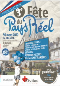 La 3ème Fête du Pays Réel se déroulera le samedi 30 mars 2019, de 10h à 18h, à l’Espace Jean Monnet à Rungis, en bordure de Paris (800 places gratuites de parking et nombreux transports en commun).