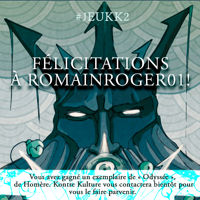 Mise à jour du vendredi 20 septembre 2019 : Félicitations de la part de l'équipe Kontre Kulture à Romainroger01, qui a été le premier à deviner la prochaine sortie : l'Odyssée d'Homère ! Il remporte donc un exemplaire gratuit.