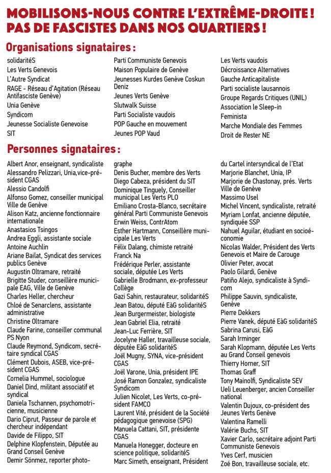 Un tract des « antifas » et la liste des signataires-censeurs [1] :