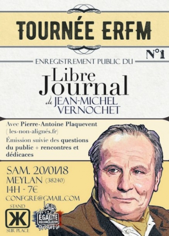 La section d’E&R Grenoble vous invite à son prochain évènement : réservez votre samedi après-midi du 20 janvier 2018 pour assister et participer à l’enregistrement du Libre journal de Jean-Michel Vernochet sur son dernier livre, à partir de 14h à Meylan (Grenoble).