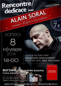 Rencontre dédicace avec Alain Soral président d’Egalité et Réconciliation le samedi 8 février 2014 à 14h30.