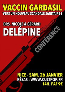 L’association Culture Populaire recevra Nicole et Gérard Delépine le samedi 26 janvier 2019 à 14h à Nice pour une conférence intitulée « Vaccin Gardasil : vers un nouveau scandale sanitaire ? ».
