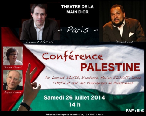 Conférence de Jacob Cohen, Marion Sigaut, Laurent Louis et Dieudonné sur la Palestine le samedi 26 juillet 2014 à 14 h