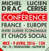 France/Europe entre guerre économique et chaos social – Conférence de Lucien Cerise et Michel Drac à Nice – 9 avril 2016