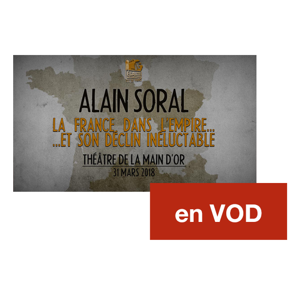 Sinon, en souscrivant au Financement Participatif d'Alain Soral, à partir de 20€/mois, vous pouvez accéder gratuitement et en avant-première aux entretiens mensuels Soral a (presque toujours) raison, mais aussi à du contenu bonus : sujets coupés au montage, coulisses et commentaires « off » du Président.