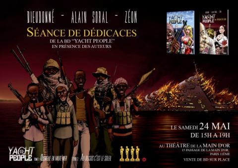Je tiens à saluer la remarquable performance du trio Soral – Dieudonné – Zéon. L’histoire est amusante et bien trouvée, les dialogues sont drôles et percutants, et les dessins-caricatures sublimes. Il est jouissif de voir tous ces « Yacht People » en prendre plein la gueule, et délicieux de relever toutes les allusions et références que Zéon a subtilement glissées dans ses dessins.